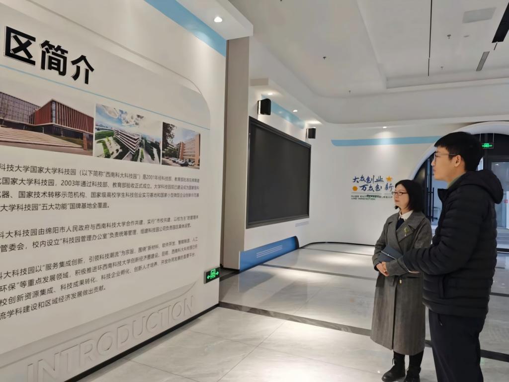 为进一步提升大学科技园运营管理效能,拓宽科技成果转化渠道,探索创新发展新模式,12月23日上午,绵阳职院大学科技园管理有限公司总经理曹艳一行,赴西南科技大学国家大学科技园开展参观交流活动。西南科技大学国家大学科技园总经理助理徐航热情接待并全程陪同参观。